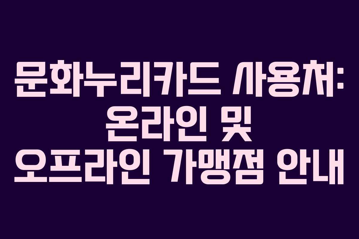 문화누리카드는 온라인과 오프라인에서 사용할 수 있는 가맹점이 있으며, 다양한 분야에서 이용 가능합니다. 주요 사용처로는 공연, 전시, 영화, 스포츠, 여행 등이 포함되며, 이를 통해 문화생활의 폭을 넓힐 수 있습니다.