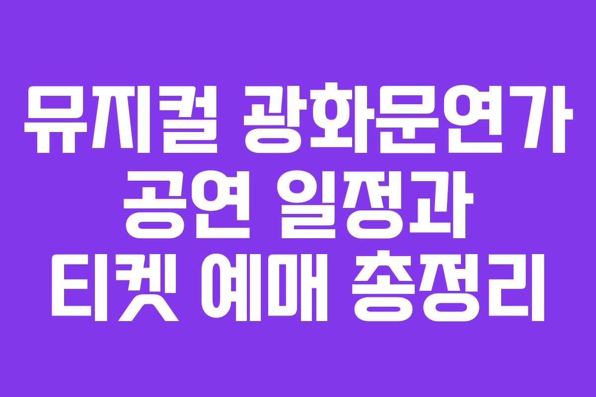 뮤지컬 “광화문연가”는 감동적인 무대와 함께 잊지 못할 추억을 선사할 것입니다. 지금 바로 티켓을 예매하고 그 특별한 순간을 경험해 보세요!