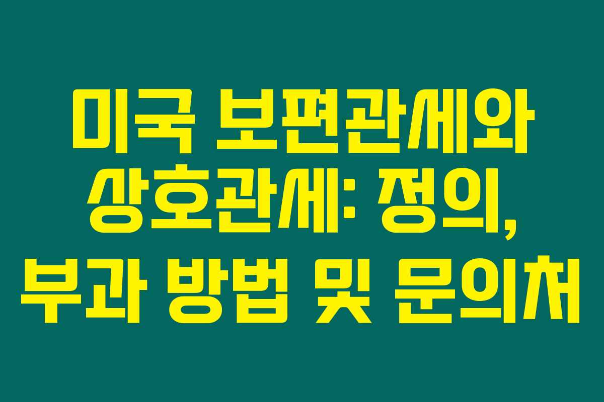 미국의 보편관세와 상호관세는 최근 글로벌 무역의 복잡성을 반영하는 중요한 요소들입니다. 아래를 읽어보시면, 이 두 가지 관세 개념의 정의와 부과 방법, 그리고 이와 관련된 문의처에 대한 정보를 자세히 이해하실 수 있습니다.
