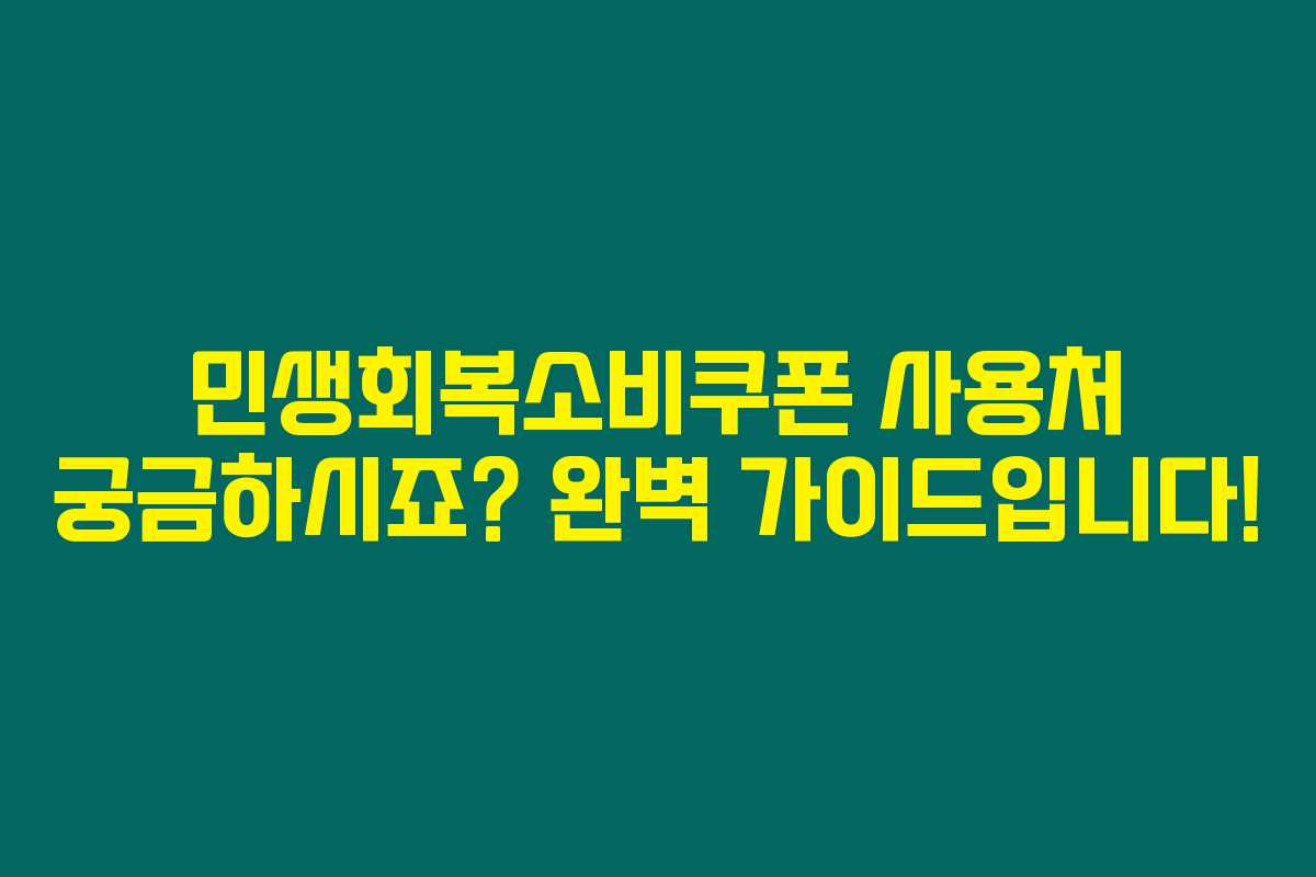 이 정보를 잘 활용하셔서 민생회복소비쿠폰을 제대로 써보세요! 지역 경제도 살리고 자신의 생활비도 절약하는 두 가지 목표를 모두 충족시킬 수 있답니다. 모두 힘내세요!
