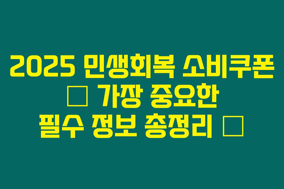 2025 민생회복 소비쿠폰 – 가장 중요한 필수 정보 총정리 💸