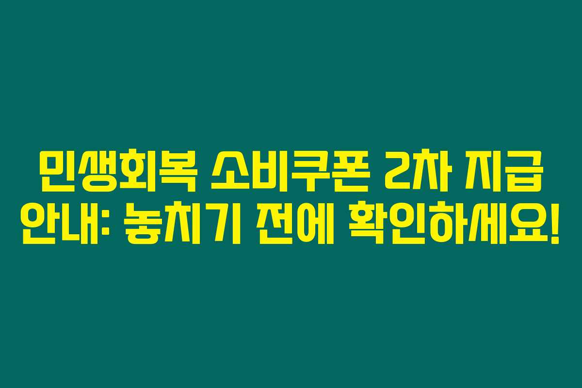 2025년 민생회복 소비쿠폰 2차 지급이 시작됩니다! 신청 대상과 지급 일정을 한눈에 확인하여 경제적 부담을 덜어보세요. 아래를 읽어보시면 모든 내용을 간단히 정리했습니다.
