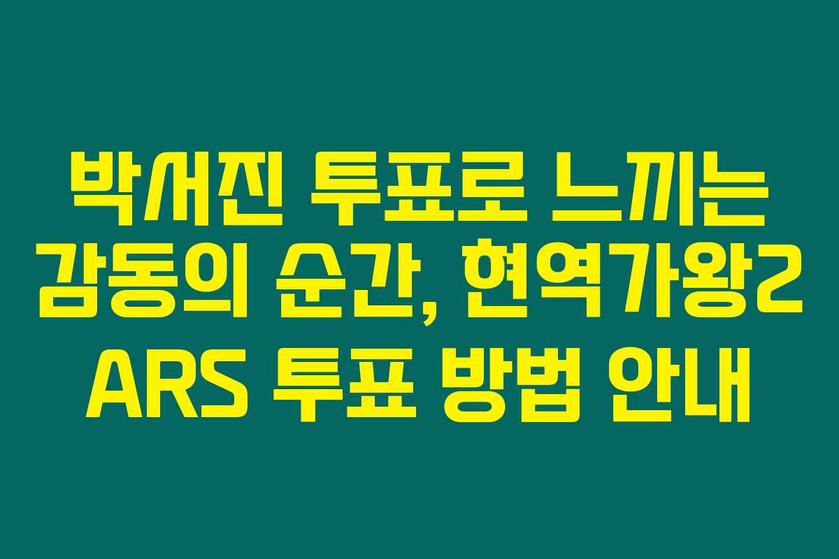 재미있는 경연 대회를 통해 음악의 매력을 다시 한 번 느끼고 싶다면 현역가왕2를 놓쳐선 안 되죠. 특히 3번 박서진 가수를 응원하고 싶다면 이 글에서 ARS 투표와 문자 투표 방법을 확인해 보세요. 방송을 보면서 어떻게 참여할 수 있는지 알아보겠습니다. 혹시 박서진에 대한 이야기를 듣고 싶다면, 아래를 읽어보시면 도움이 될 거예요!
