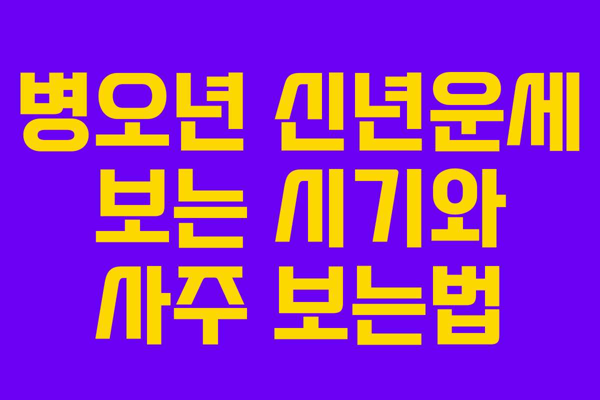 2026년 병오년의 신년운세는 새로운 한 해를 준비하는 중요한 시점입니다. 신년운세는 한 해의 운세를 미리 살펴보는 방법으로, 올해의 운세 속에서 긍정적인 방향과 주의할 점을 파악하는 데 도움을 줍니다. 이 글에서는 병오년 신년운세를 보는 시기와 효과적인 사주 보는 방법에 대해 알아보겠습니다.