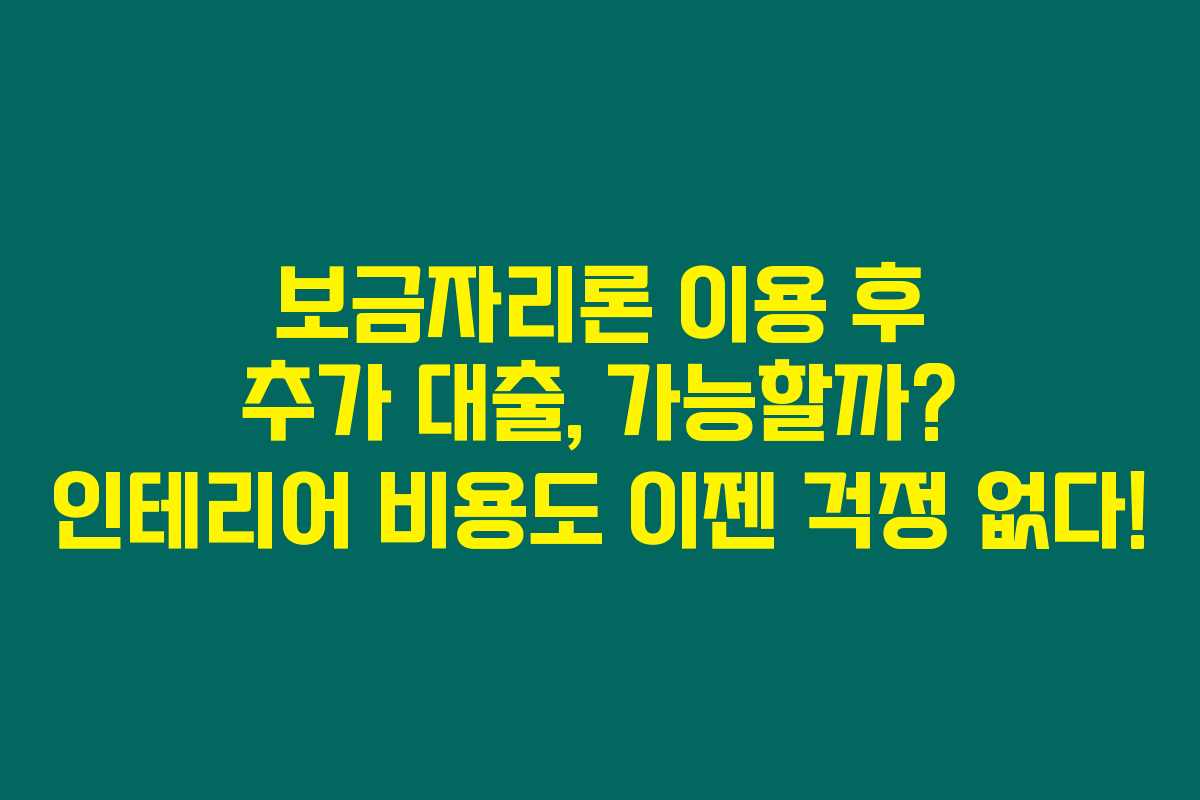 많은 사람들이 궁금해하는 부분이 바로 보금자리론을 다 사용한 후 추가 대출이 가능한가 하는 거예요. 필요하다면 대부업체를 통해 추가 대출을 받을 수 있지만 일부 조건들이 있어요. 예를 들어, 주택담보대출보다 금리가 높을 수 있고 심사 기준이 까다로울 수 있어요. 이런 점은 중복해서 확인이 필요해요.