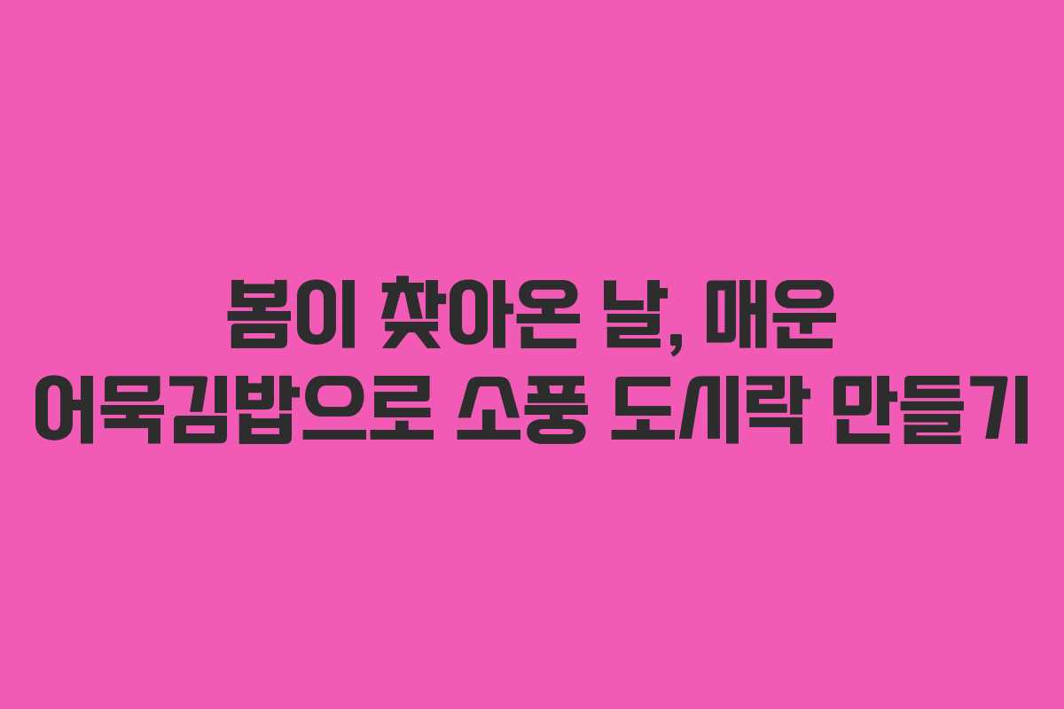 위의 재료들을 준비한 후, 세부적인 조리 방법으로 넘어가 보겠습니다. 이렇게 조리된 매운 어묵김밥은 봄소풍에 적합한 메뉴가 될 것입니다.
