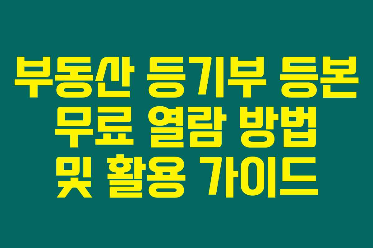 제가 직접 알아본 바로는 부동산 거래에서 등기부 등본을 확인하는 것이 얼마나 중요한지 잘 아실 겁니다. 부동산 거래 시의 주요 서류인 이 문서를 무료로 열람할 수 있는 방법이 있으며, 특정 사이트와 모바일 앱을 통해 간편하게 확인할 수 있습니다. 아래를 읽어보시면 제가 추천하는 무료 열람 방법과 등기부 등본 보는 법에 대해 자세히 안내드리겠습니다.