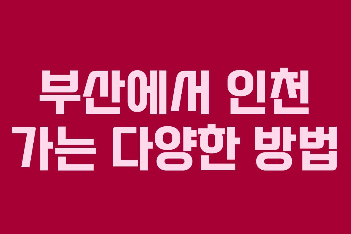 부산에서 인천으로 가는 다양한 방법에 대해 알아보겠습니다. 여러 옵션 중에서 본인의 상황에 맞는 최적의 방법을 선택할 수 있습니다.