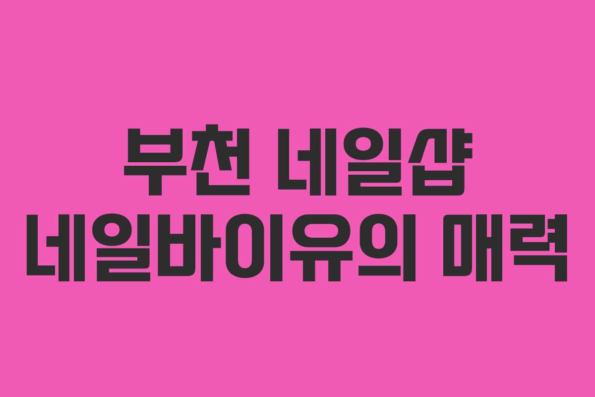부천에서 네일샵을 찾고 있다면 네일바이유를 방문해 보세요. 예쁜 아트와 친절한 서비스로 특별한 경험을 선사받을 수 있습니다!