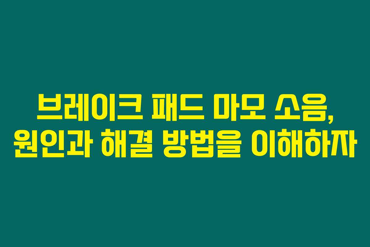 브레이크 패드 마모 소음, 원인과 해결 방법을 이해하자