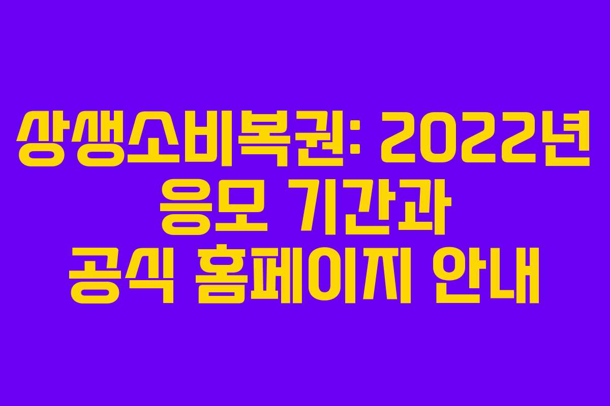 아래를 읽어보시면 2022년 상생소비복권의 응모 기간, 대상 및 장소, 당첨 구조, 업로드 방법과 문의처를 한눈에 확인할 수 있습니다. 공식 홈페이지 주소도 함께 정리했습니다.