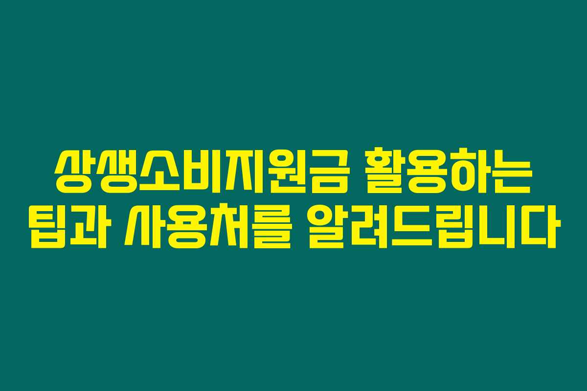 상생소비지원금으로 스마트 쇼핑을 원하신다면 주목해주세요. 이 글에서는 상생소비지원금의 신청 방법과 사용처를 알아보면서 알뜰하게 혜택을 누리는 방법을 공유할게요. 특히 “상생소비지원금을 신청해볼까?” 고민하고 계신다면, 아래를 읽어보시면 좋은 정보를 얻으실 수 있답니다.