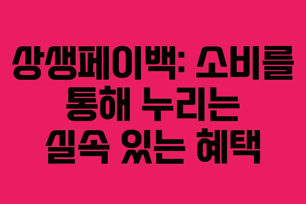 상생페이백은 단순한 소비자 혜택을 넘어 지역 경제 활성화에도 기여하는 제도입니다. 소비를 통해 얻는 혜택이 지역 상권에 긍정적인 영향을 미치니, 꼭 활용해 보시길 바랍니다.