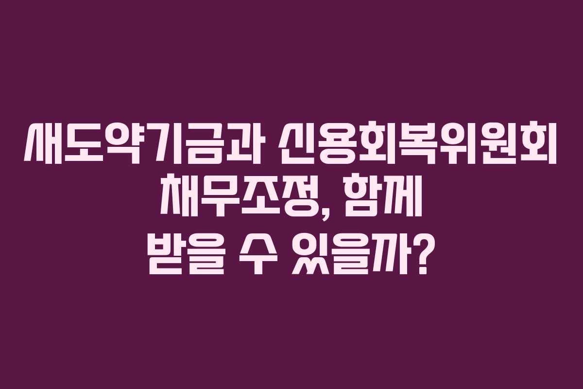 2025년 10월부터 시행된 새도약기금은 장기 연체 소액 채무자를 위한 중요한 금융 정책입니다. 많은 사람들이 신용회복위원회(신복위)를 통해 채무조정을 받고 있는 상황에서, 새도약기금의 혜택을 동시에 받을 수 있는지에 대한 궁금증이 커지고 있습니다. 이번 글에서는 두 제도의 관계와 적용 가능성에 대해 살펴보겠습니다.