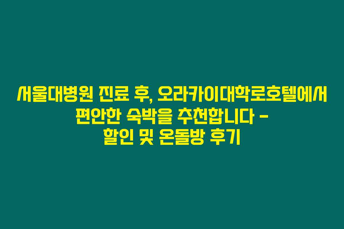 제가 직접 경험해본 결과로는, 서울대병원에서 진료를 받고 근처에 숙박할 곳을 찾는 것이 꽤나 중요한 일이라는 것을 느꼈어요. 서울대병원이 위치한 대학로 근처의 오라카이대학로호텔은 조용하고 편안한 분위기로 아주 좋은 선택이었답니다. 아래를 읽어보시면 제가 경험한 온돌방의 혜택과 할인 정보에 대해 알차게 정리해드릴게요.