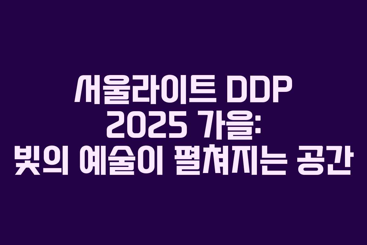 2025년 가을, 서울의 밤을 환상적인 빛으로 물들일 ‘서울라이트 DDP’가 동대문디자인플라자(DDP)에서 열립니다. 이번 행사는 8월 28일부터 9월 7일까지 진행되며, 서울시가 주최하고 서울디자인재단이 주관합니다. DDP의 외벽이 초대형 미디어 아트 캔버스로 변신하여 관객들에게 잊지 못할 경험을 선사합니다.