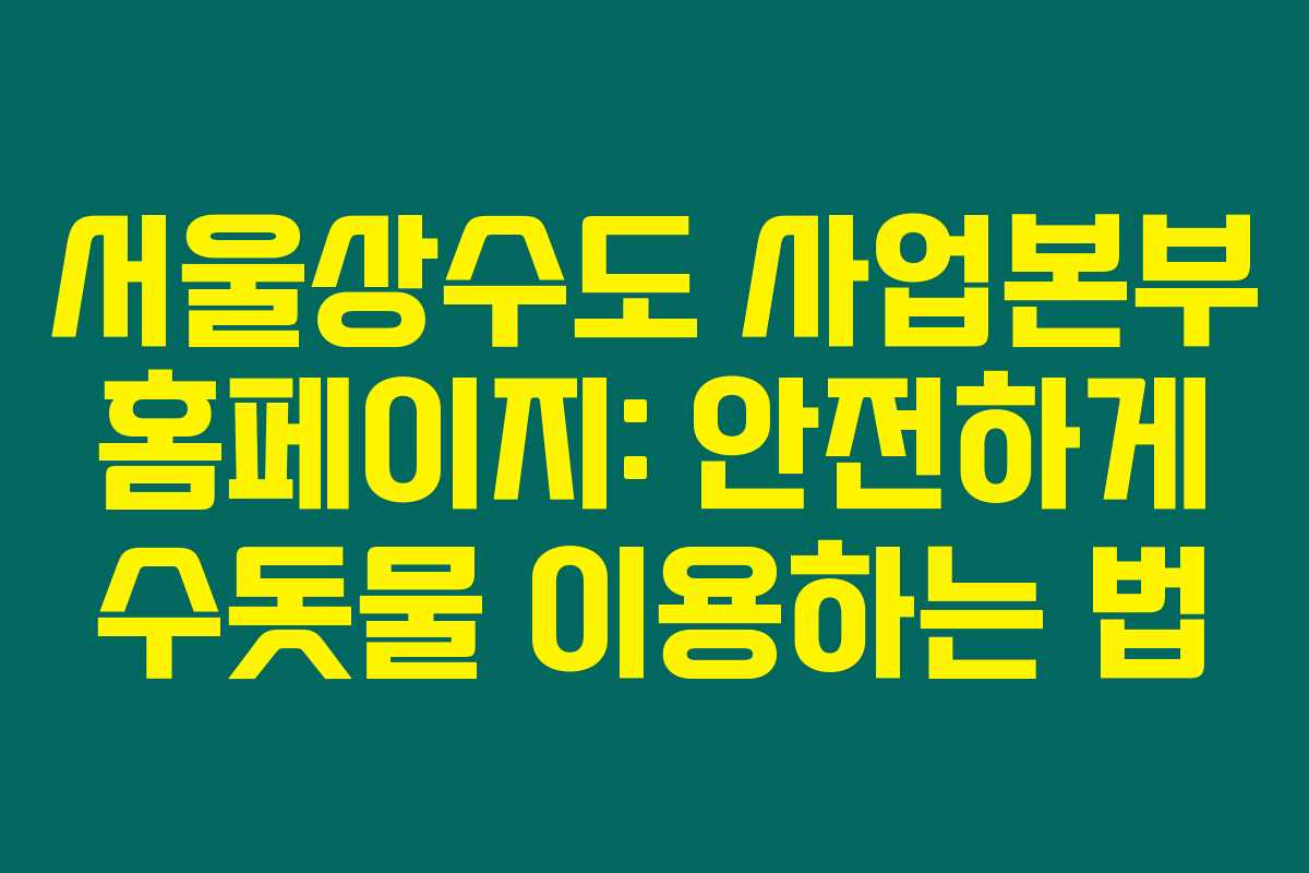 서울상수도 사업본부 홈페이지를 찾고 계신가요? 수돗물에 대한 궁금증이 커지고 있는 이 시점, 아래를 읽어보시면 여러분이 알아야 할 필수 정보와 유용한 서비스들에 대해 안내해 드릴게요. 정말 수돗물을 안심하고 마시고 싶은 분이라면 꼭 체크해야 할 홈페이지 랍니다!