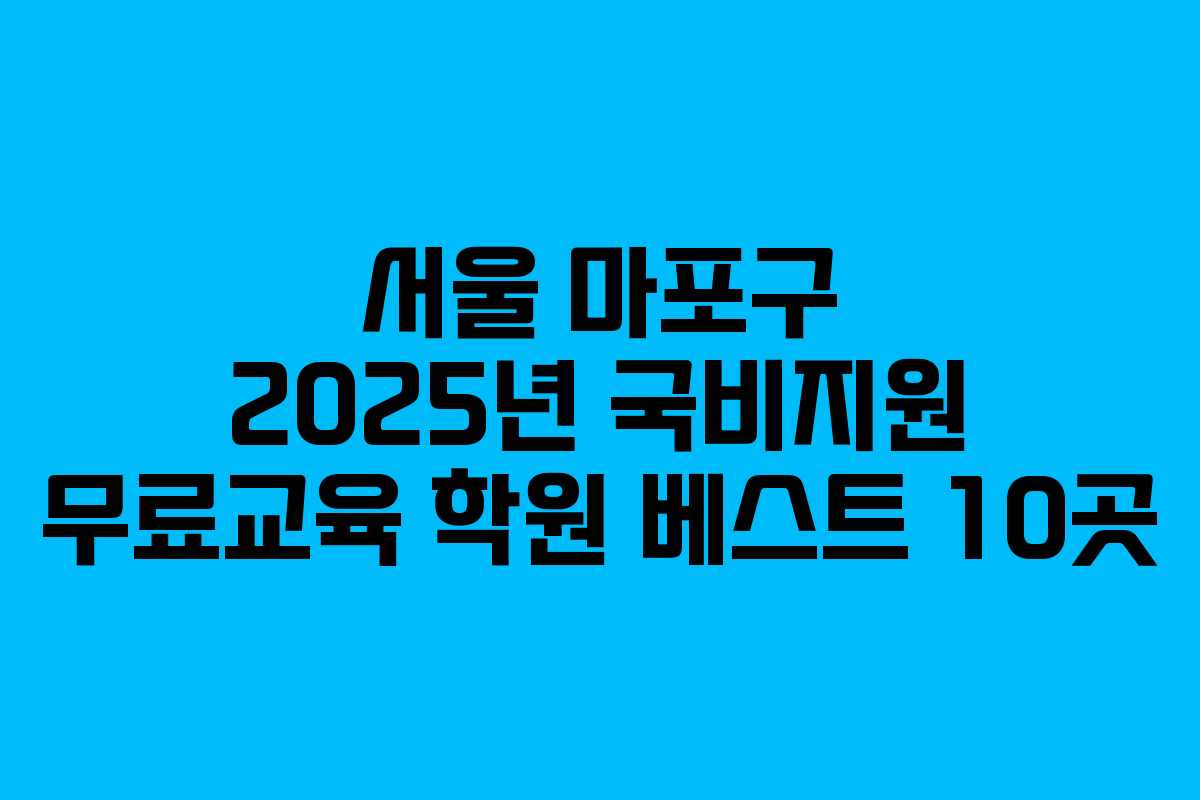 서울 마포구에서 국비 지원 무료 교육을 통해 새로운 경력을 쌓고 싶으신가요? 미용, 요양 보호사, 네일 아트, 간호 조무사 등 다양한 분야의 교육 기회를 소개합니다. 이 글에서는 마포구의 우수한 학원 10곳을 추천하며, 각 분야의 교육 특징과 장점을 설명합니다.