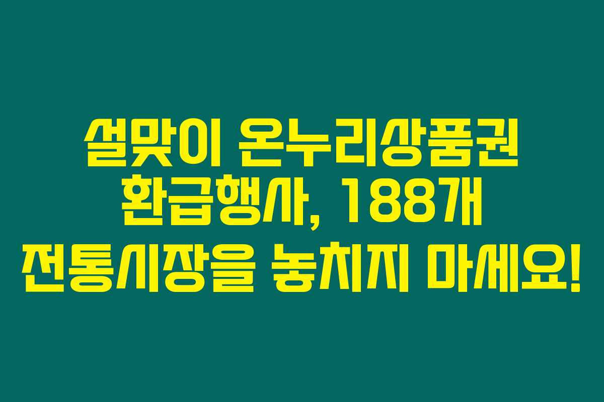 설 명절이 다가오면서 가족과 함께 시장을 찾는 분들이 많아지고 있지요? 그렇다면 이번 설맞이 전통시장 온누리상품권 환급행사에 대해 알아보세요! 188개 전통시장에서 국산 농축산물을 구매하고 실속있게 환급 혜택을 누릴 수 있는 특별한 기회랍니다. 아래를 읽어보시면 참여하는 전통시장의 목록과 혜택을 자세히 확인할 수 있어요.