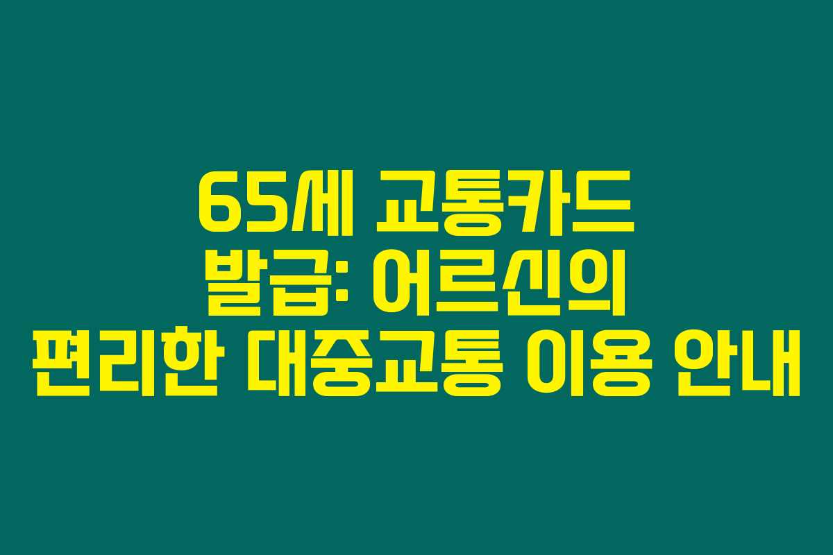 최종적으로 65세 교통카드는 어르신들이 편리하게 대중교통을 이용할 수 있도록 도와주는 훌륭한 제도입니다. 제가 직접 리서치한 내용으로 어르신들의 자유로운 이동을 위해 꼭 필요한 정보니, 발급 절차를 따라 만족스러운 이용을 하시기 바랍니다.