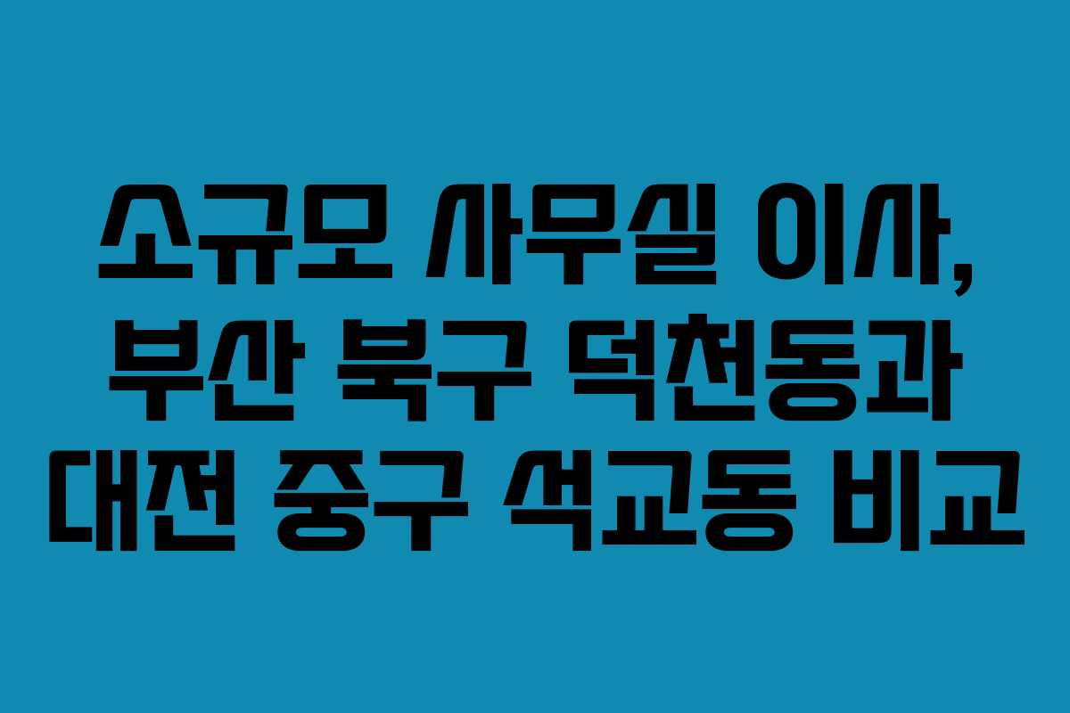 이사 준비를 잘 하신다면, 부산 북구 덕천동과 대전 중구 석교동으로의 소규모 사무실 이사도 순조롭게 진행할 수 있습니다. 안전하고 편리한 이사를 위해 신중한 결정하시기 바랍니다.