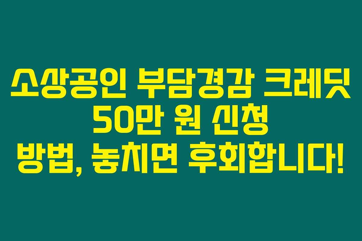소상공인 부담경감 크레딧은 50만 원 지원금으로, 여러분의 생계에 큰 도움이 될 수 있어요. 만약 소상공인으로서 공과금이나 4대 보험료 때문에 힘든 상황이라면, 꼭 아래를 읽어보셔야해요. 어떻게 신청하고 활용할 수 있는지, 제대로 알아둘 필요가 있거든요!