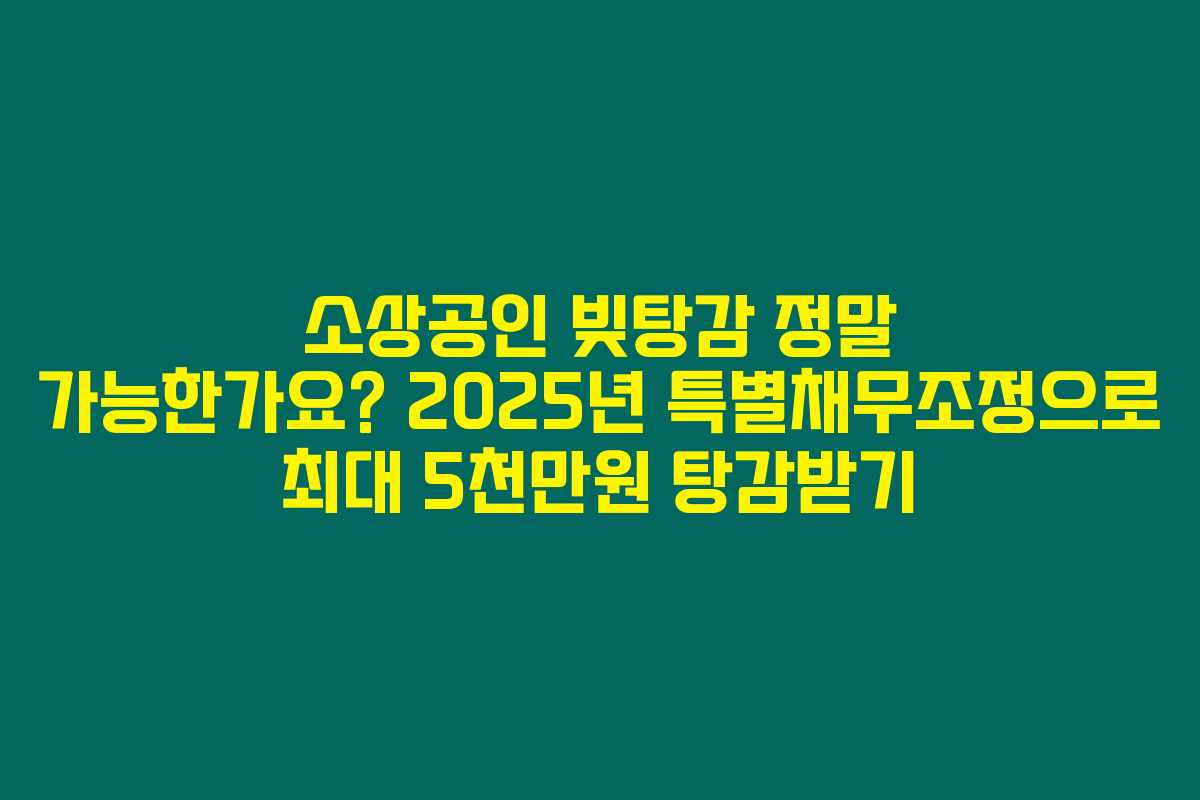 제가 직접 리서치한 바로는 2025년부터 시행되는 정부의 특별채무조정 정책이 소상공인들을 위한 큰 지원이 될 수 있다는 사실인데요. 고금리와 코로나로 힘든 시간을 겪어온 자영업자들에게 최대 5천만원까지 빚 탕감이 가능하다는 점은 정말 큰 기회라고 할 수 있습니다. 아래를 읽어보시면 이 정책의 핵심 내용과 신청 방법, 기대 효과에 대해 자세히 알려드릴게요.