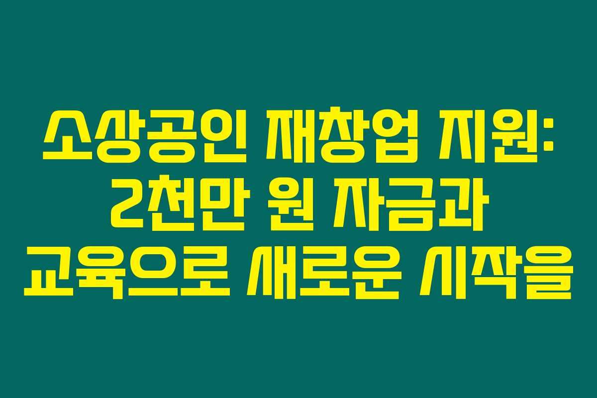 제가 알아본 바로는, 폐업한 소상공인들에게는 새로운 시작을 꿈꿀 수 있는 기회가 제공되고 있어요. 바로 ‘소상공인 재창업 지원’ 프로그램인데요, 이 프로그램에서는 최대 2천만 원의 자산 지원과 더불어 향후 성공적인 창업을 위해 필요한 교육도 함께 지원하고 있습니다. 아래를 읽어보시면 소상공인 재창업 지원의 모든 내용을 자세히 알아보실 수 있을 거예요.