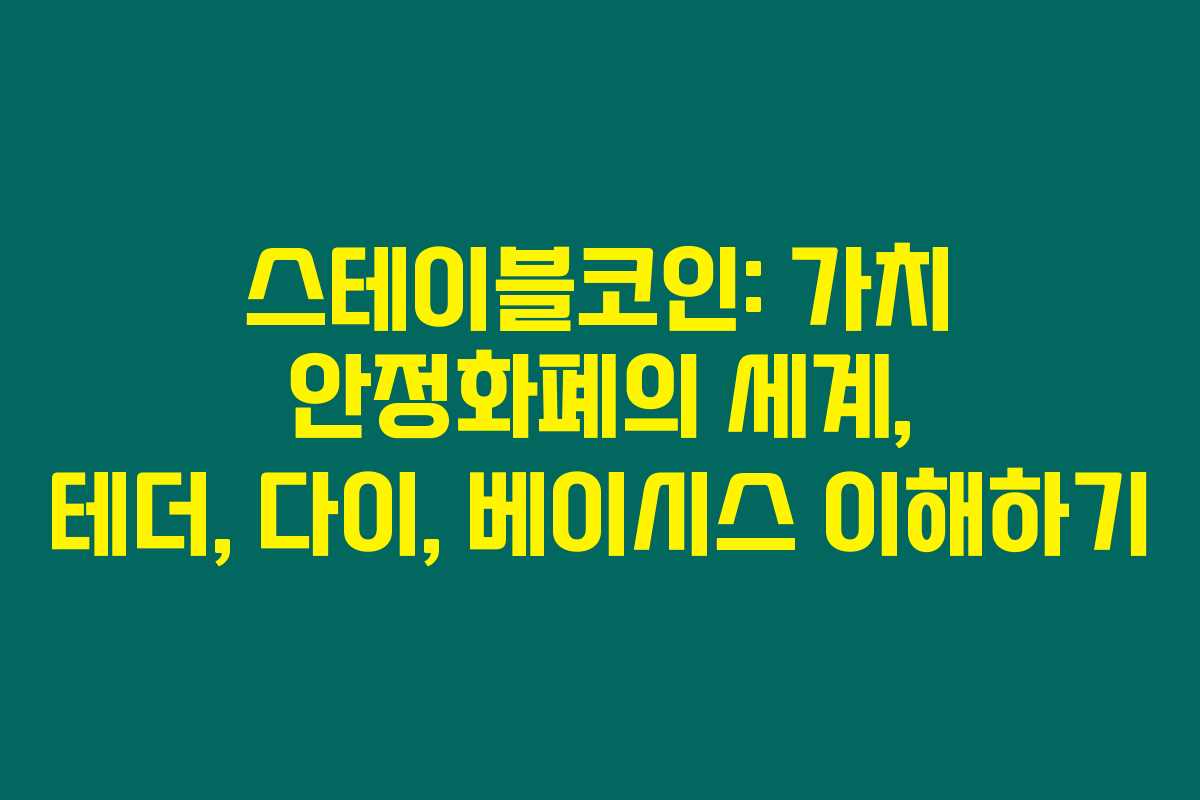제가 직접 알아본 바로는 스테이블코인은 금융 시장에서 큰 관심을 받고 있는 자산으로, 이들은 가격 변동성이 적고 가치가 안정되어 있다고 알려져 있습니다. 특히 테더(USDT), 다이(DAI), 베이시스(BASIS)와 같은 코인들은 그 가치가 대개 1달러에 고정되어 있지만, 각각의 운영 원리는 상당히 다릅니다. 아래를 읽어보시면 이들 스테이블코인의 종류와 특성, 그리고 투자 시 주의해야 할 점들에 대하여 자세히 알아보실 수 있습니다.