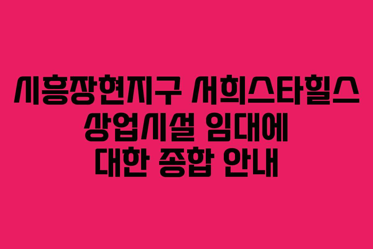 시흥장현지구 서희스타힐스 상업시설 임대에 대한 명확한 정보를 제공하고자 합니다. 이 지역은 다양한 개발 계획이 진행 중인 곳으로, 상업시설의 입지를 고려할 때 매우 유망한 조건을 갖추고 있습니다. 본 안내는 2026년 기준으로 최신 정보를 반영한 것으로, 임대 및 운영에 대한 실질적인 가이드를 제시합니다.