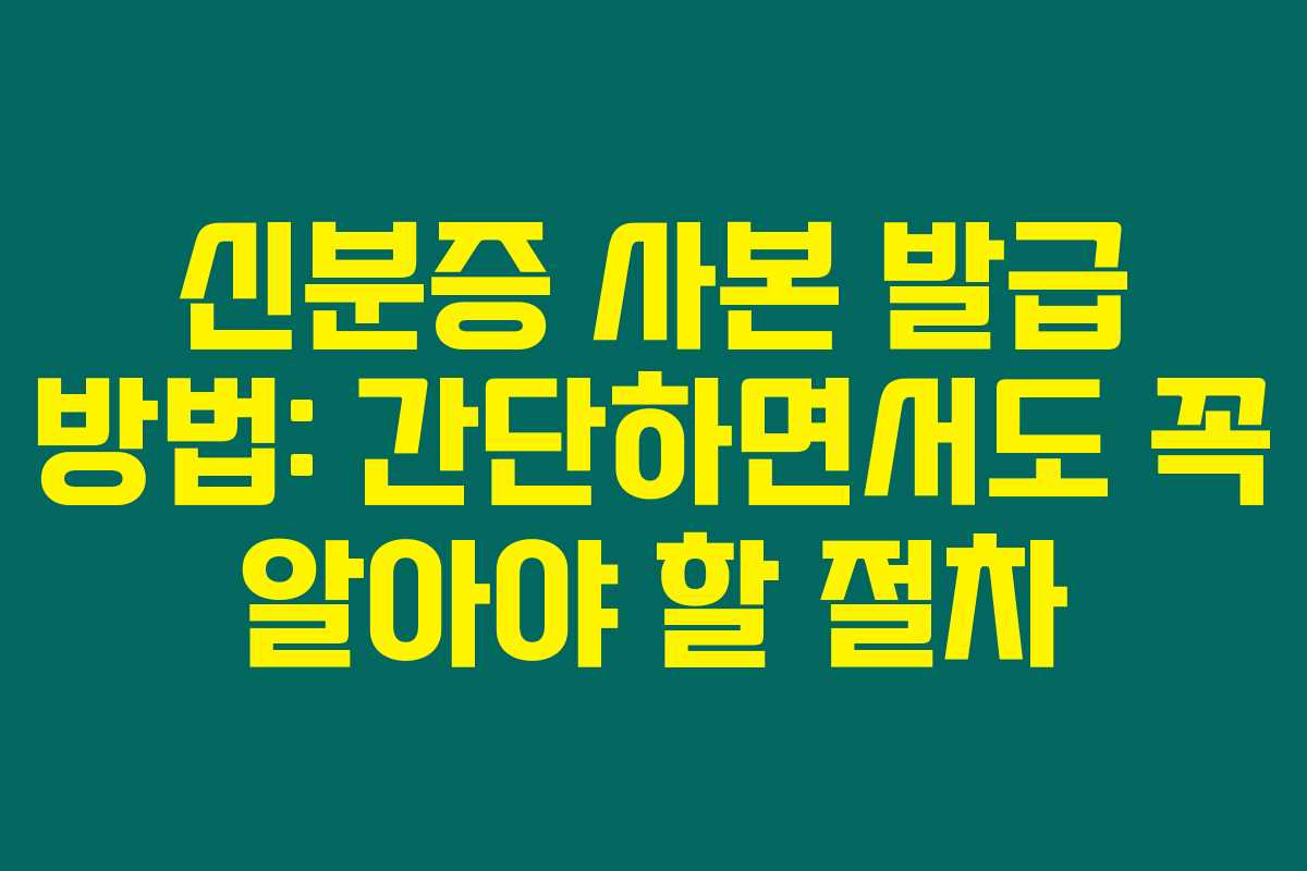 제가 직접 경험해본 결과로는, 신분증 사본 발급은 많은 사람들이 필요하지만, 그 절차에 대해 충분히 알지 못하는 경우가 많습니다. 신분증 사본은 은행 거래, 공공기관 신청, 각종 서류 제출 시 필수적으로 요구될 수 있는 서류죠. 아래를 읽어보시면 신분증 사본 발급에 필요한 모든 정보와 주의사항을 총정리하였습니다.