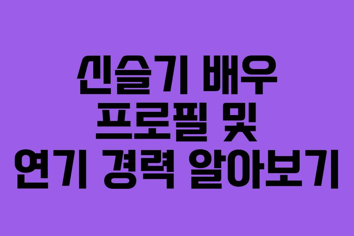 신슬기 배우 프로필 및 연기 경력 알아보기