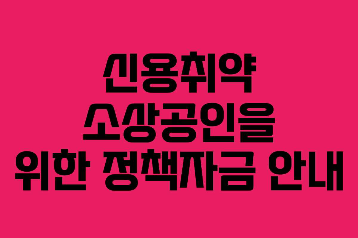 신용취약소상공인자금은 신용이 낮아 일반 금융권에서 대출받기 어려운 소상공인들에게 큰 도움이 되는 정책자금입니다. 조건을 충족하신다면 적극적으로 활용해보시기 바랍니다.