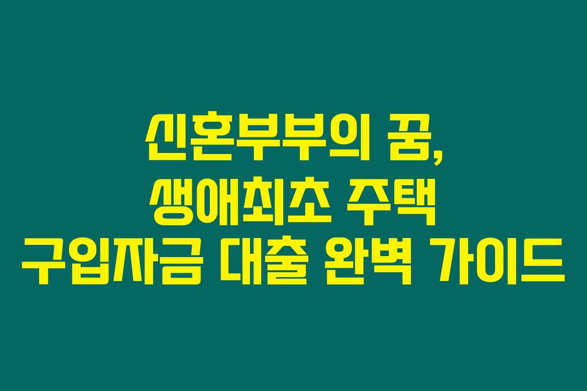 신혼부부의 꿈, 생애최초 주택 구입자금 대출 완벽 가이드