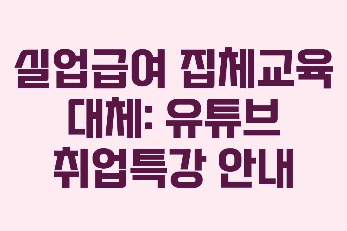 최근 코로나19 확산으로 인해 실업급여 수급자들을 위한 집체교육이 취소되었습니다. 대신, 고용센터에서는 유튜브를 통해 취업특강을 운영하여 재취업 활동을 지원하고 있습니다. 이 글에서는 유튜브 취업특강을 통해 구직활동을 어떻게 대체할 수 있는지 알아보겠습니다.