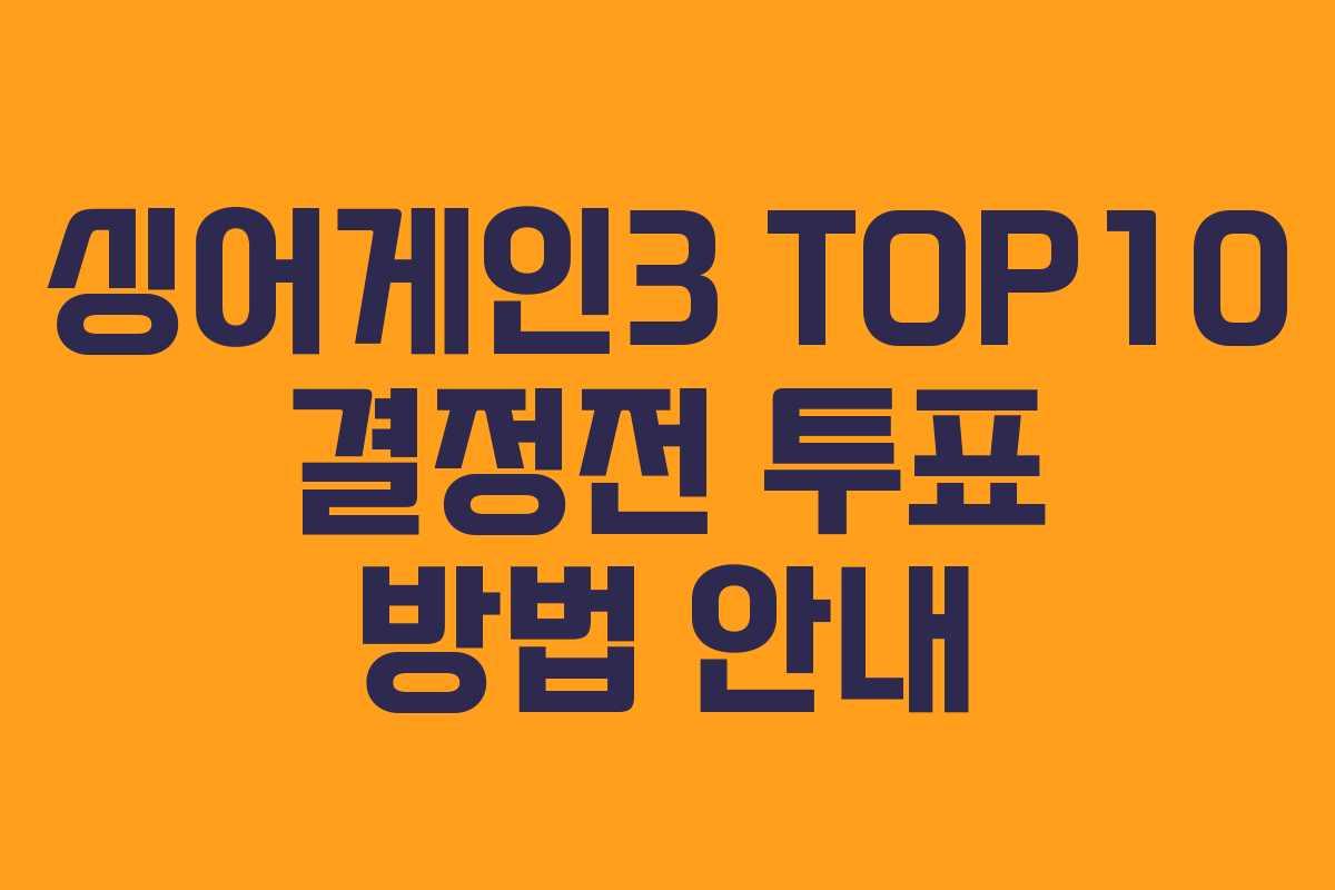 싱어게인3의 TOP10 결정전이 시작되었습니다. 뛰어난 실력의 참가자들이 대결을 펼치고 있는 가운데, 여러분의 소중한 투표가 참가자들에게 큰 힘이 될 것입니다. 이 글에서는 투표 방법과 각 참가자들의 공연에 대해 안내드립니다.