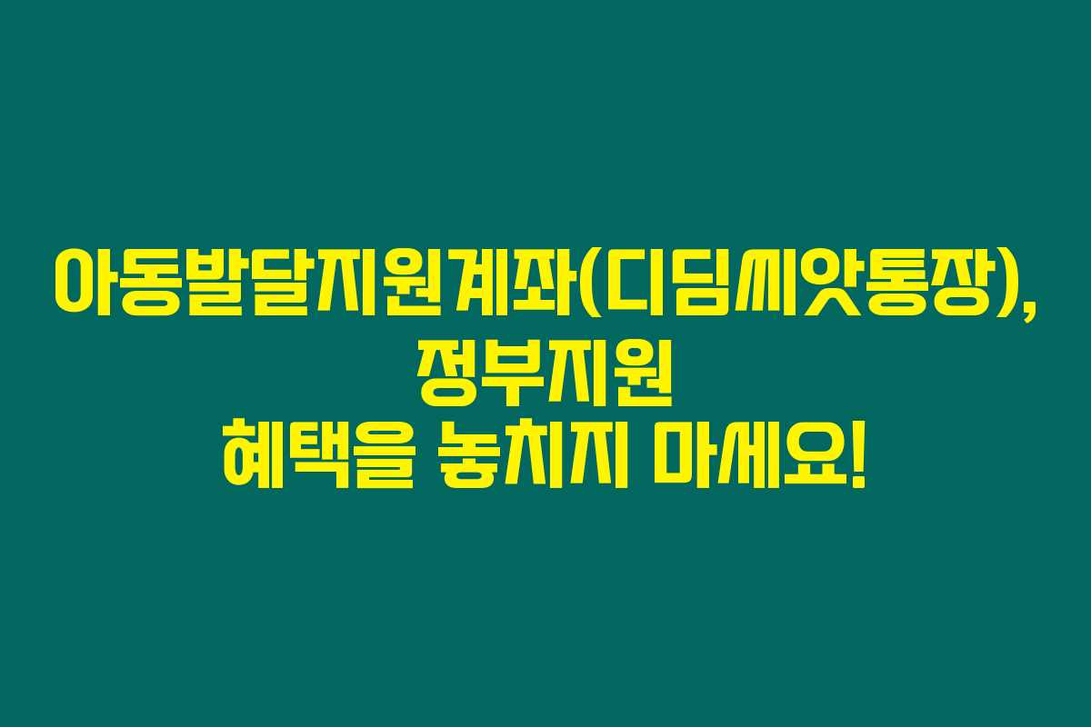 아동발달지원계좌(디딤씨앗통장)를 통해 아동들이 더욱 건강하게 자립할 수 있도록 도움이 되길 바랍니다. 기회를 놓치지 마시고, 제대로 활용해보세요!