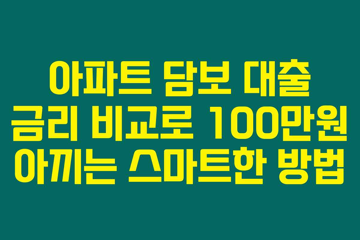 제가 직접 리서치한 바로는, 아파트 담보 대출을 받을 때 금리 차이에 따라 최대 100만원 이상을 아낄 수 있는 방법이 많답니다. 아파트를 구매하거나 기존 주택을 담보로 대출을 검토하는 분들은 금리에 따라 큰 재정적 영향을 받기 때문에, 아래를 읽어보시면 금리 비교와 추가 조건에 대한 유용한 정보가 가득할 거예요.