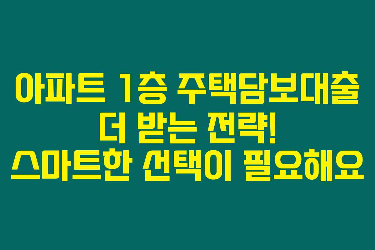 아파트 1층 주택담보대출 더 받는 전략! 스마트한 선택이 필요해요