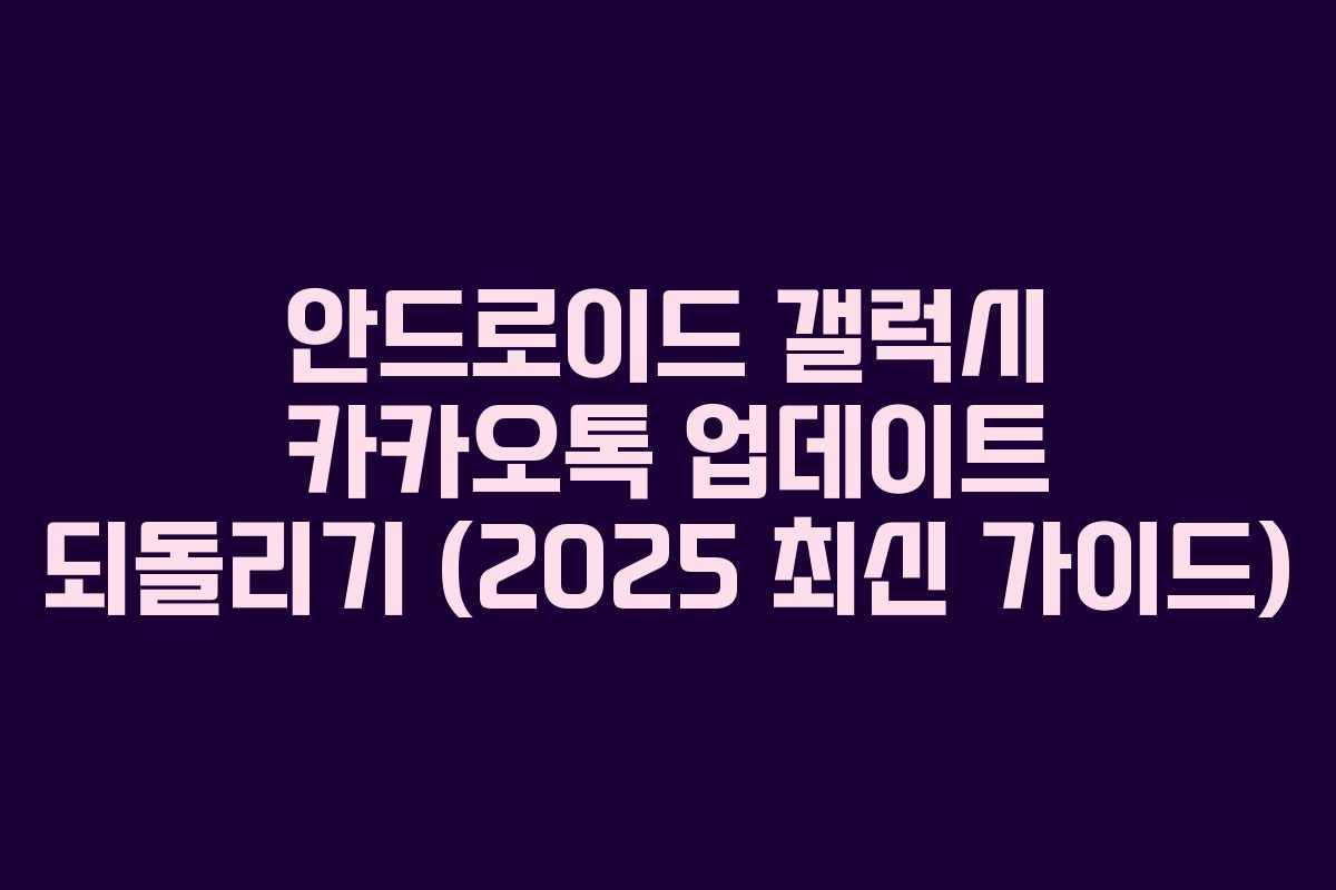 갤럭시에서 카카오톡을 이전 버전으로 되돌리는 방법을 알아보겠습니다. 이 과정은 안전하게 진행할 수 있으며, 단계별로 필요한 절차를 정리하였습니다.