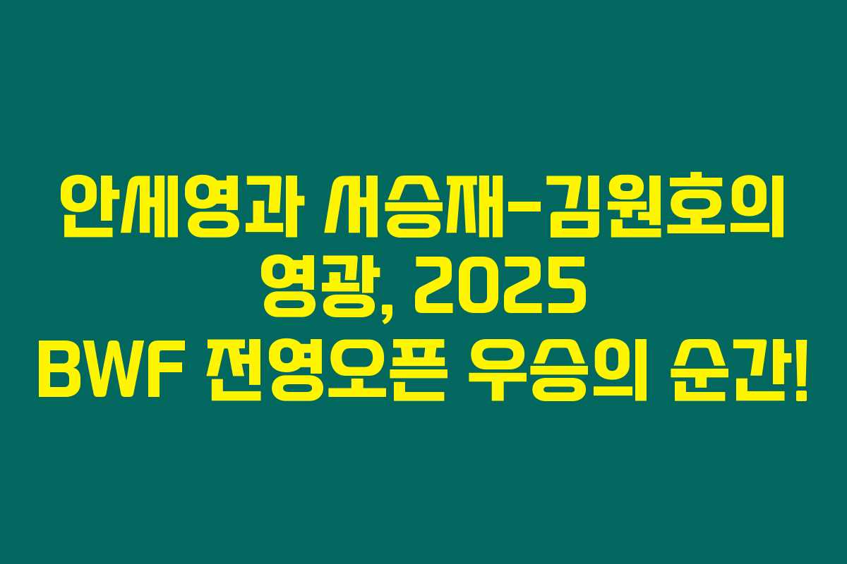 2025년 BWF 전영오픈에서 안세영이 여자 단식 부문에서 우승하고, 서승재와 김원호가 남자 복식 부문에서 정상에 오르며 한국 배드민턴에 새로운 역사를 썼습니다. 아래를 읽어보시면 이 특별한 순간과 선수들의 활약상을 만나보실 수 있습니다.