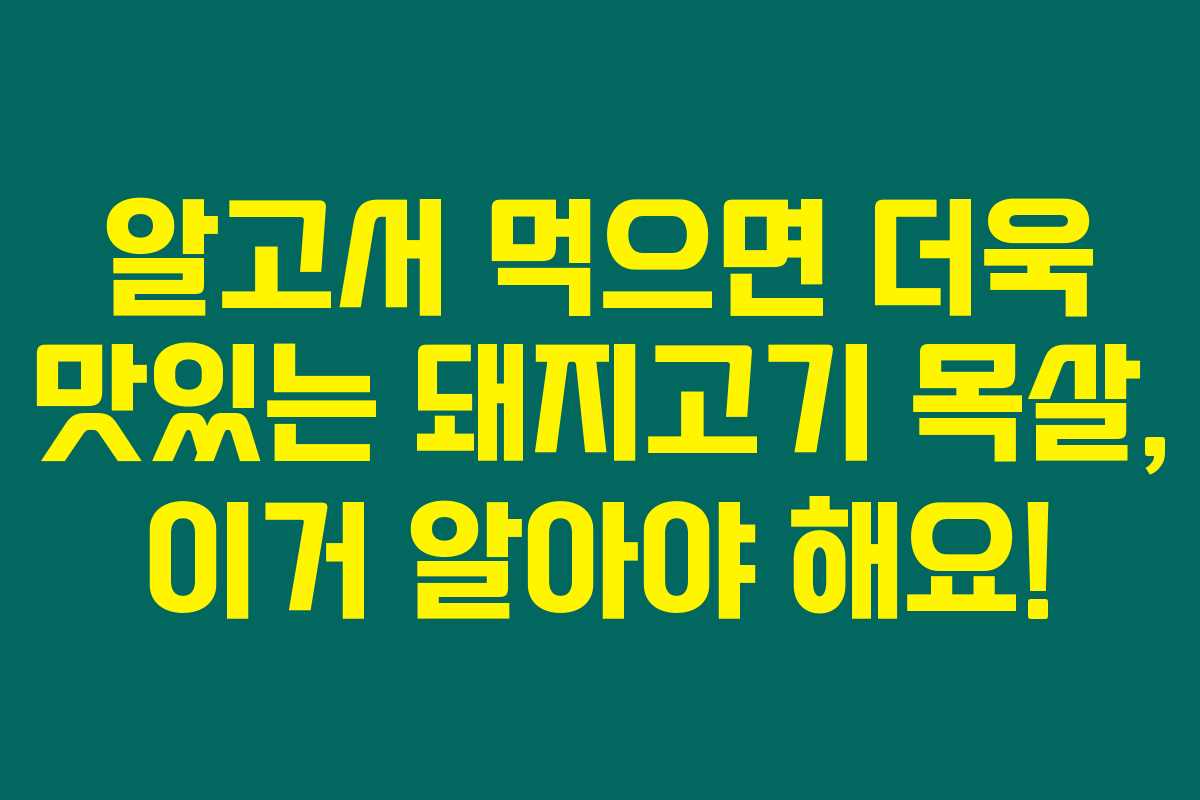 돼지고기 목살은 많은 사람들이 사랑하는 인기 있는 고기죠. 만약 돼지고기 목살에 대해 모르는 것이 있다면, 아래를 읽어보시면 더욱 맛있고 건강하게 즐길 수 있는 방법을 소개해 드릴게요!