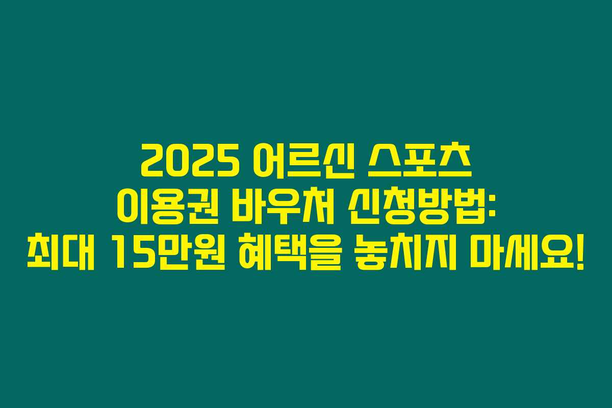 2025 어르신 스포츠 이용권 바우처 신청방법: 최대 15만원 혜택을 놓치지 마세요!