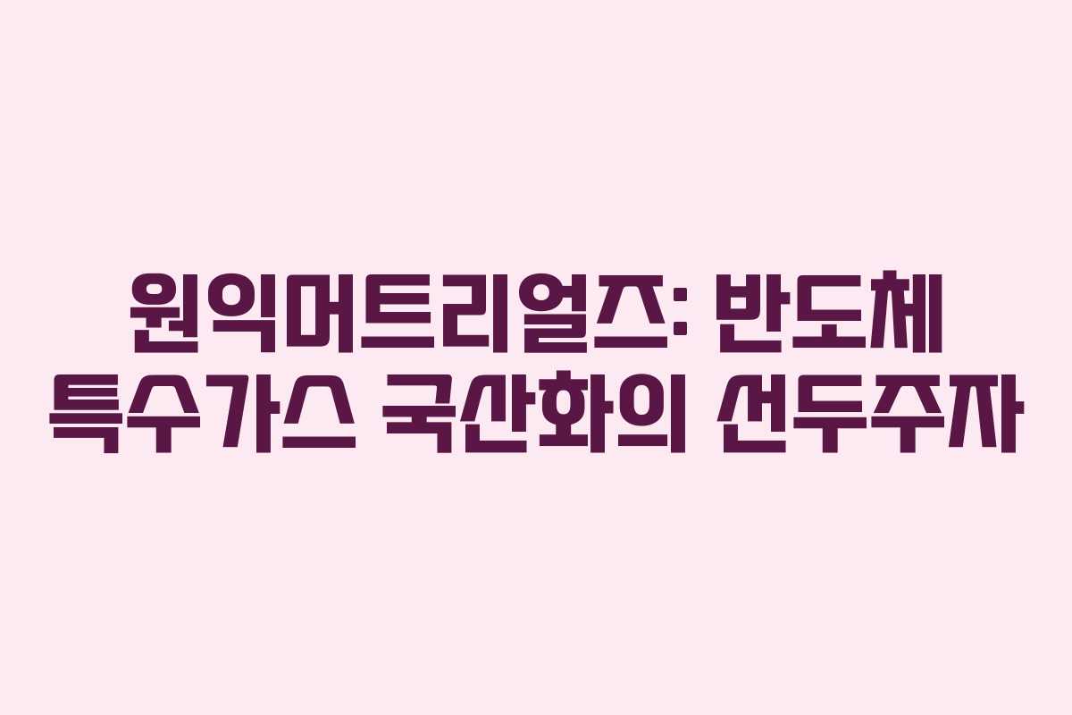 원익머트리얼즈는 반도체 제조에 필수적인 특수가스를 생산하는 기업으로, 국내외 시장에서 중요한 역할을 하고 있습니다. 이 회사는 고품질의 특수가스를 제공하여 반도체 제조의 효율성을 높이고, 기술적 자립을 이루는 데 기여하고 있습니다.