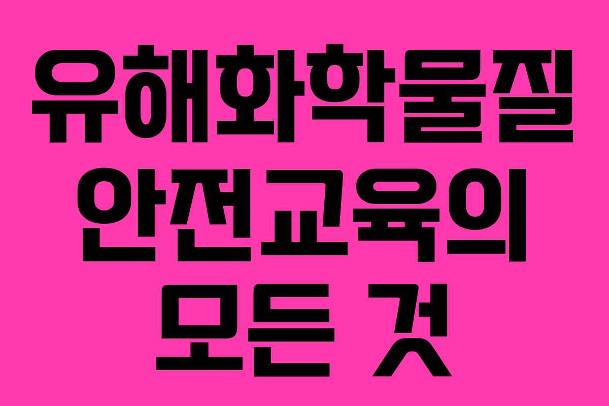 유해화학물질 안전교육은 근로자의 안전과 건강을 보호하기 위해 필수적입니다. 이를 통해 사고를 예방하고, 안전한 작업 환경을 조성할 수 있습니다.