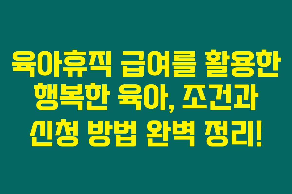 육아휴직 급여 조건부터 신청 방법까지 알아보겠습니다. 육아휴직 급여는 자녀 양육과 직장 복귀 사이의 균형을 도와주며, 법적으로 보장된 권리입니다. 제가 직접 경험해본 결과, 아래 내용을 함께 살펴보시면 많은 도움이 될 거에요.