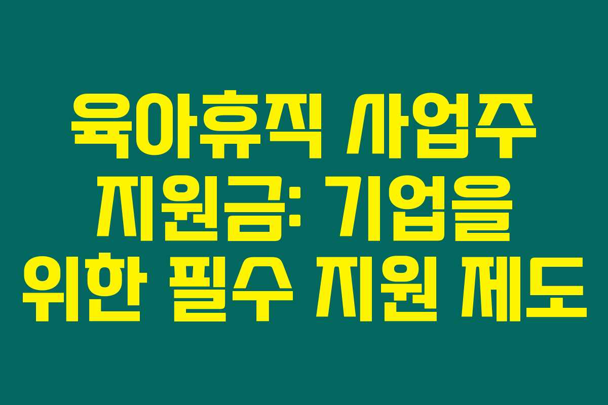이 글에서는 육아휴직 사업주 지원금에 대해 상세히 알려드립니다. 제가 판단하기로는, 육아휴직 지원금은 근로자의 고용 안정을 위한 중요한 제도로, 기업이 육아휴직을 적극적으로 지원할 수 있도록 하는 경제적 혜택입니다. 이 제도를 통해 기업들은 보다 체계적으로 인력을 관리할 수 있습니다.
