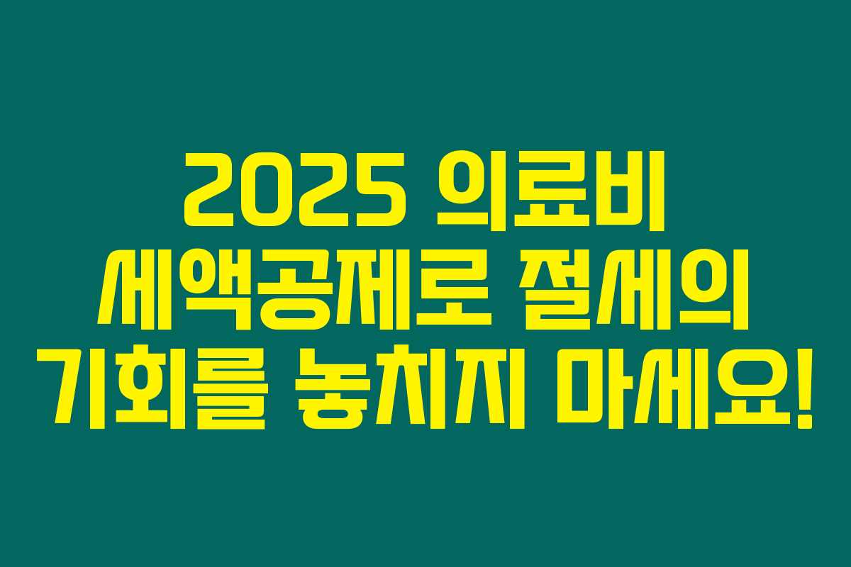 2025년에도 의료비 세액공제를 통해 가족의 의료비 부담을 줄이고 절세 혜택을 누릴 수 있는 기회를 놓치지 마세요. 각 항목을 잘 확인하시고, 최대한의 혜택을 누리시길 바랍니다.