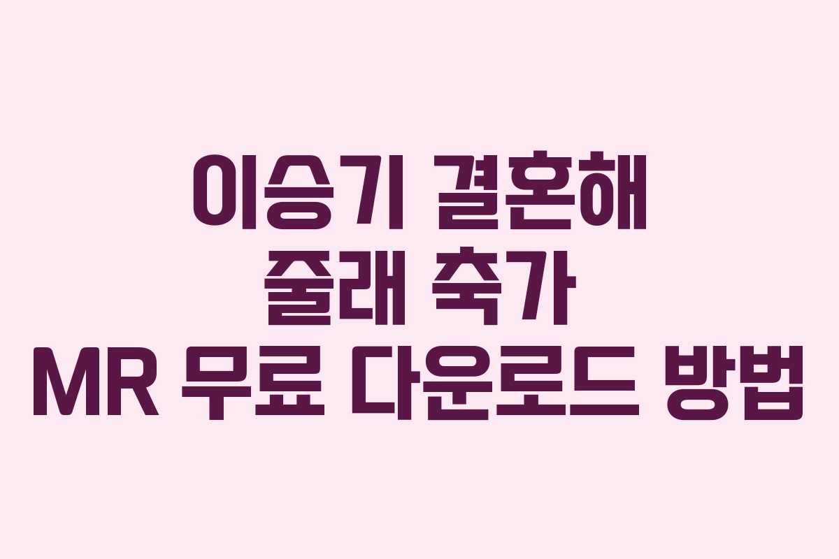 결혼식에서 축가는 특별한 의미를 지니며, 많은 이들이 축가를 준비하기 위해 다양한 과정을 거칩니다. 오늘은 이승기의 ‘결혼해 줄래’ 축가 MR을 무료로 다운로드하는 방법에 대해 알아보겠습니다. 요즘 많은 사람들이 행사에 참여하게 되면서 축가 요청도 늘어나고 있습니다. 따라서 무료로 축가 MR을 다운로드하여 활용하는 방법을 안내드립니다.