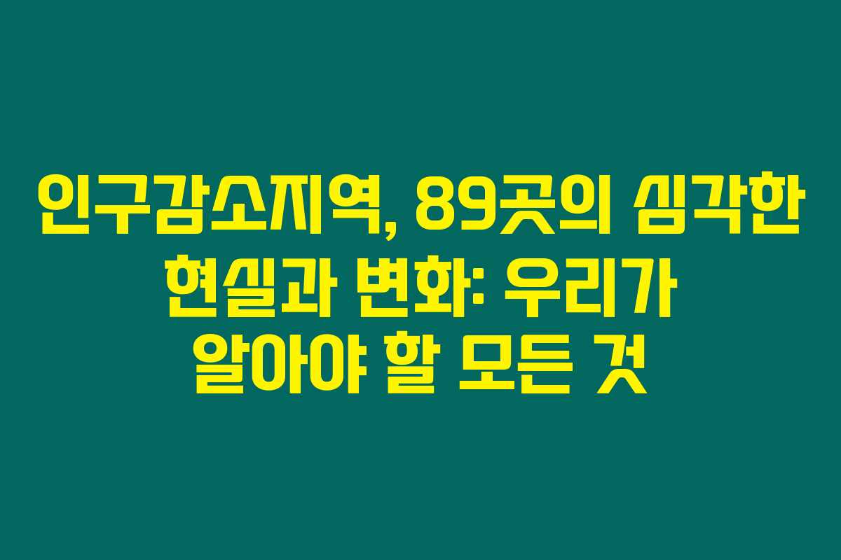 제가 직접 리서치한 바로는, 최근 한국에서 인구감소가 심각하게 진행되고 있으며, 특히 89개의 인구감소지역이 지정되었습니다. 이러한 지역들은 인구가 급격히 유출되고 있으며, 이는 단순한 통계 이상의 심각한 사회 문제를 나타냅니다. 아래를 읽어보시면 인구감소의 실태와 그 요인, 그리고 유출인구의 특성에 대해 자세히 알게 되실 겁니다.